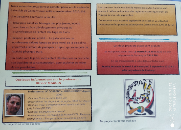 Nous serions heureux de vous compter parmi nos licenciés du judo club de Corbeny pour cette nouvelle saison 2020/2021.